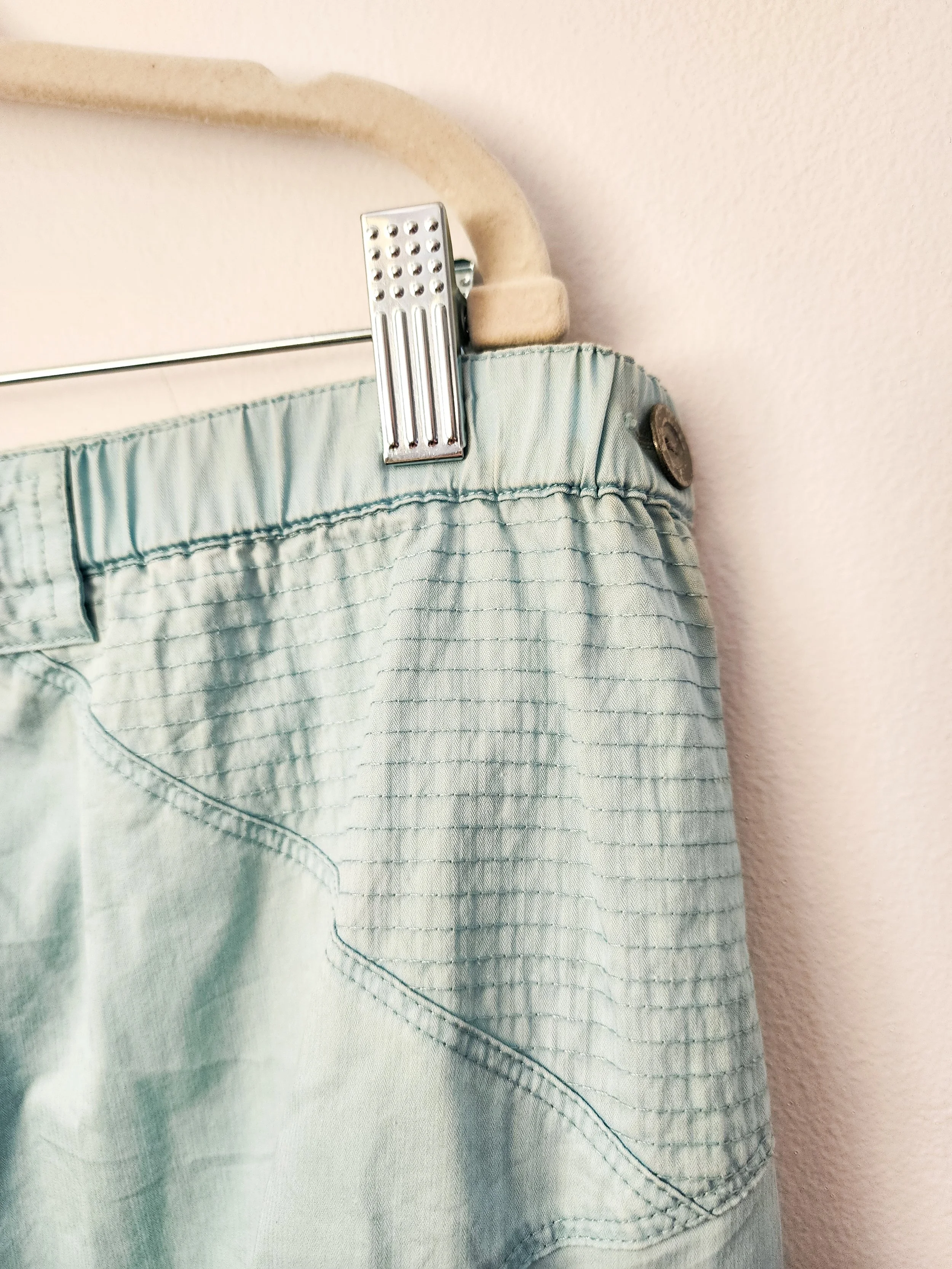 • elastic waist with zippered side and button hold