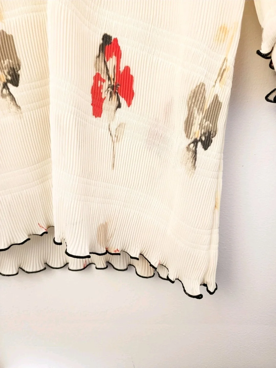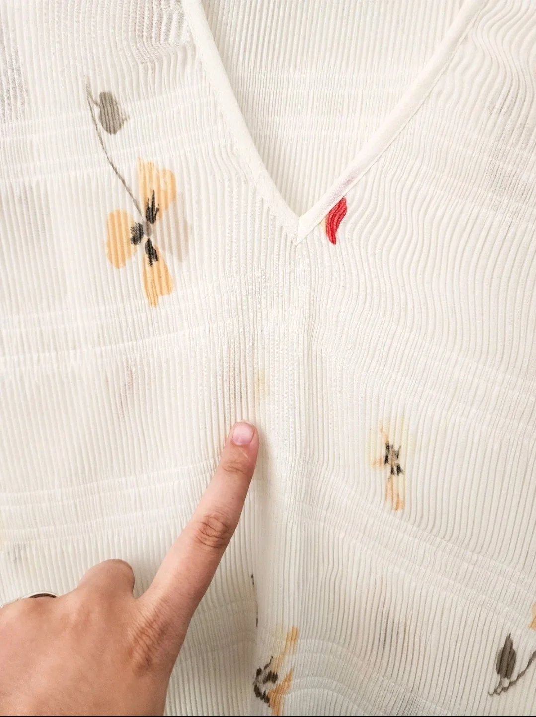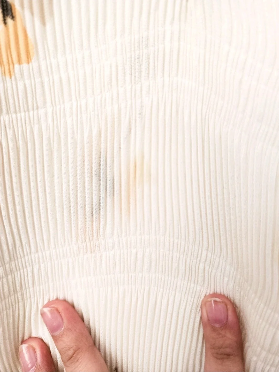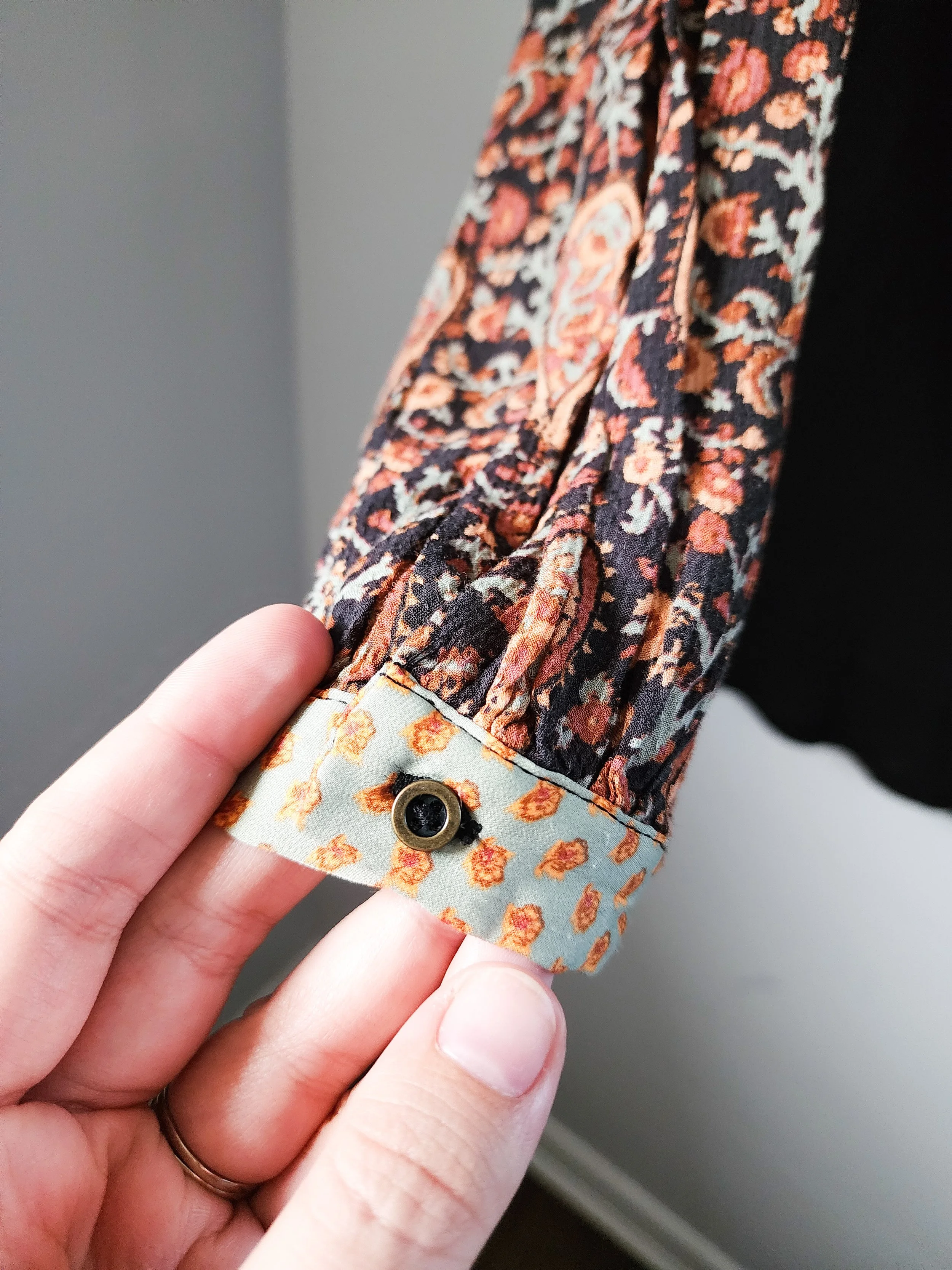 • frayed button holes on the cuffs (pictured)