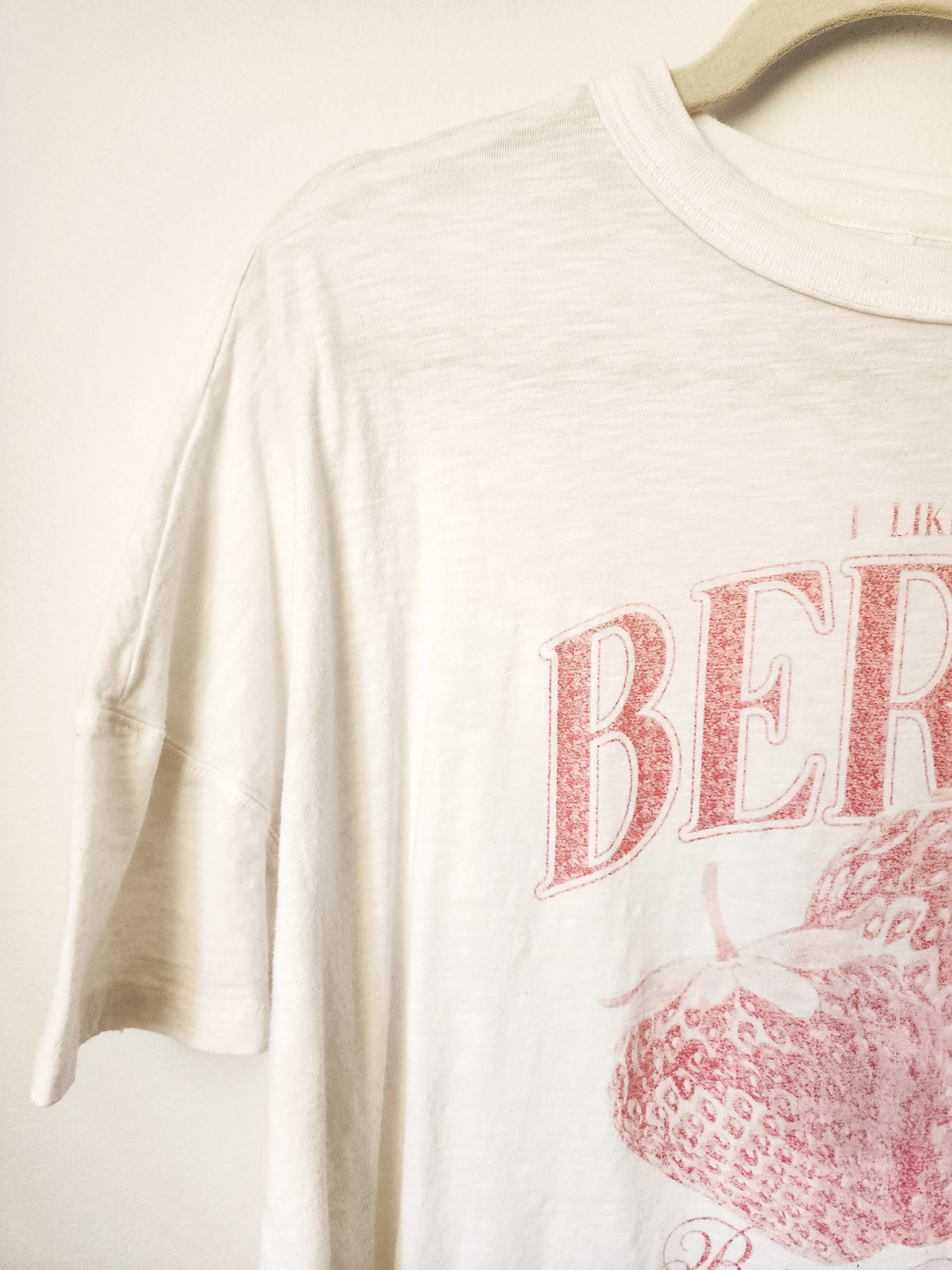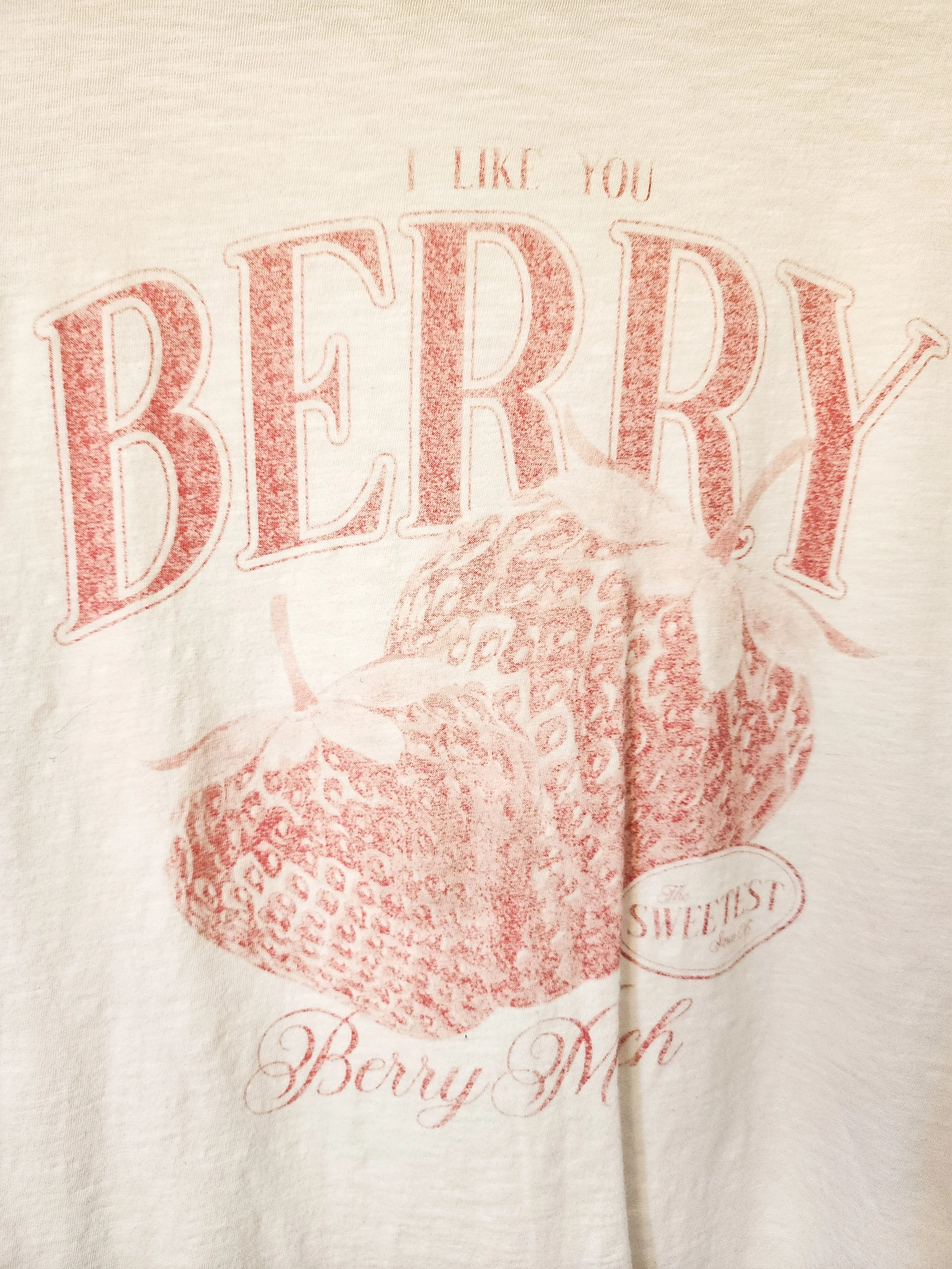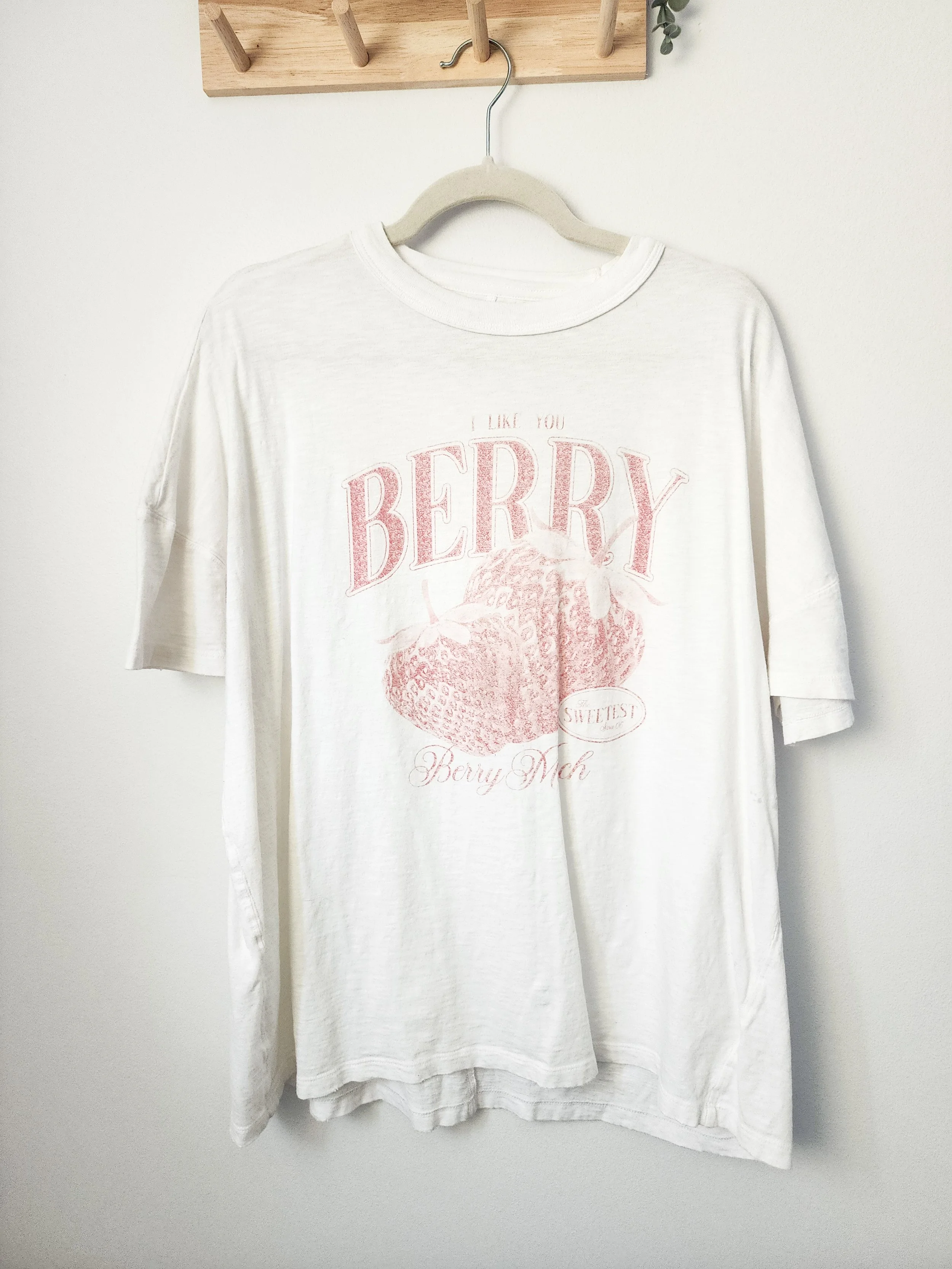 • features an oversized fit with a berry graphic print