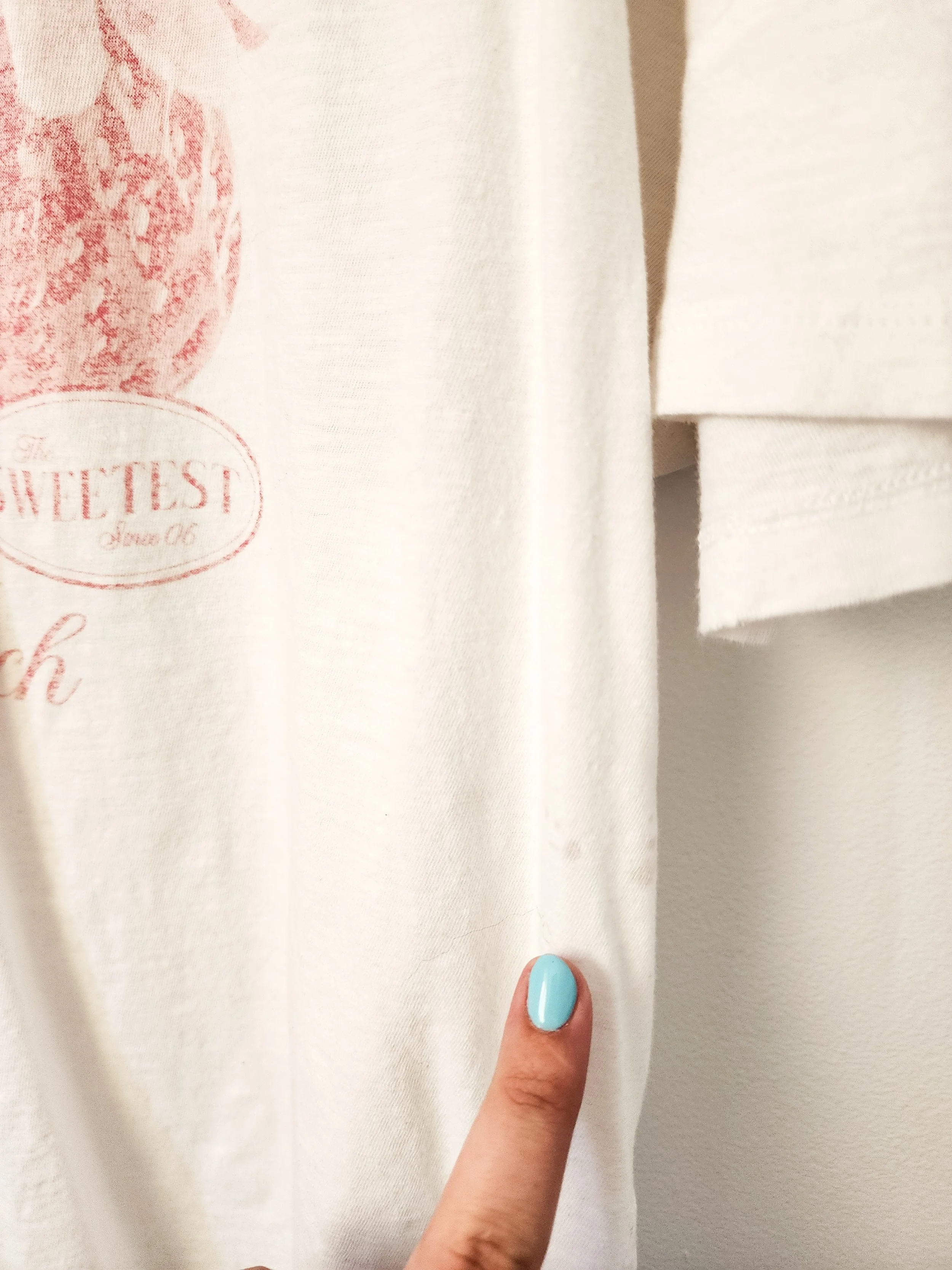 • two small discolorations on the front side and one spot on the back (all pictured)