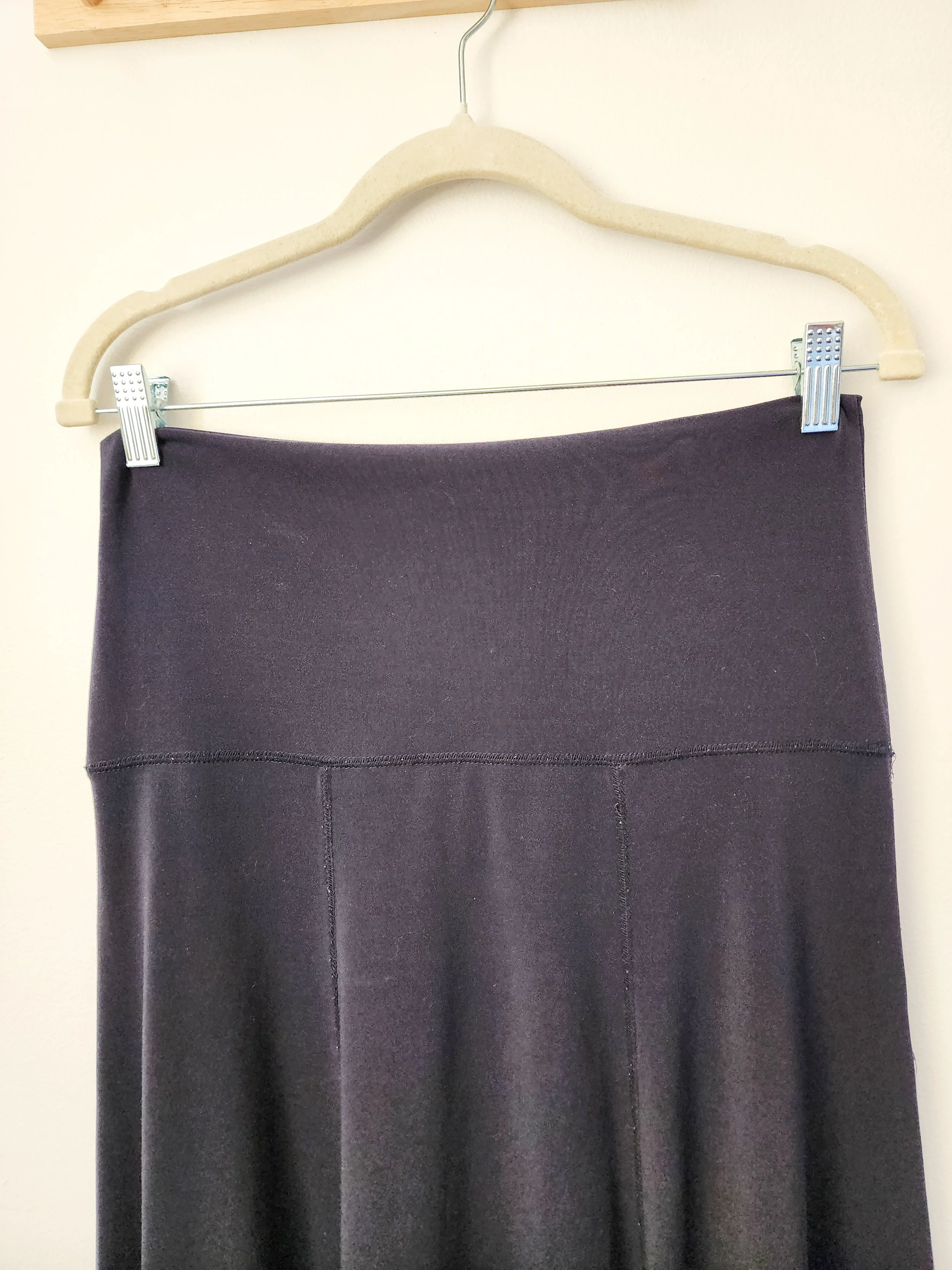 • tall waist can folded over, worn over a baby bump, or worn as a strapless dress