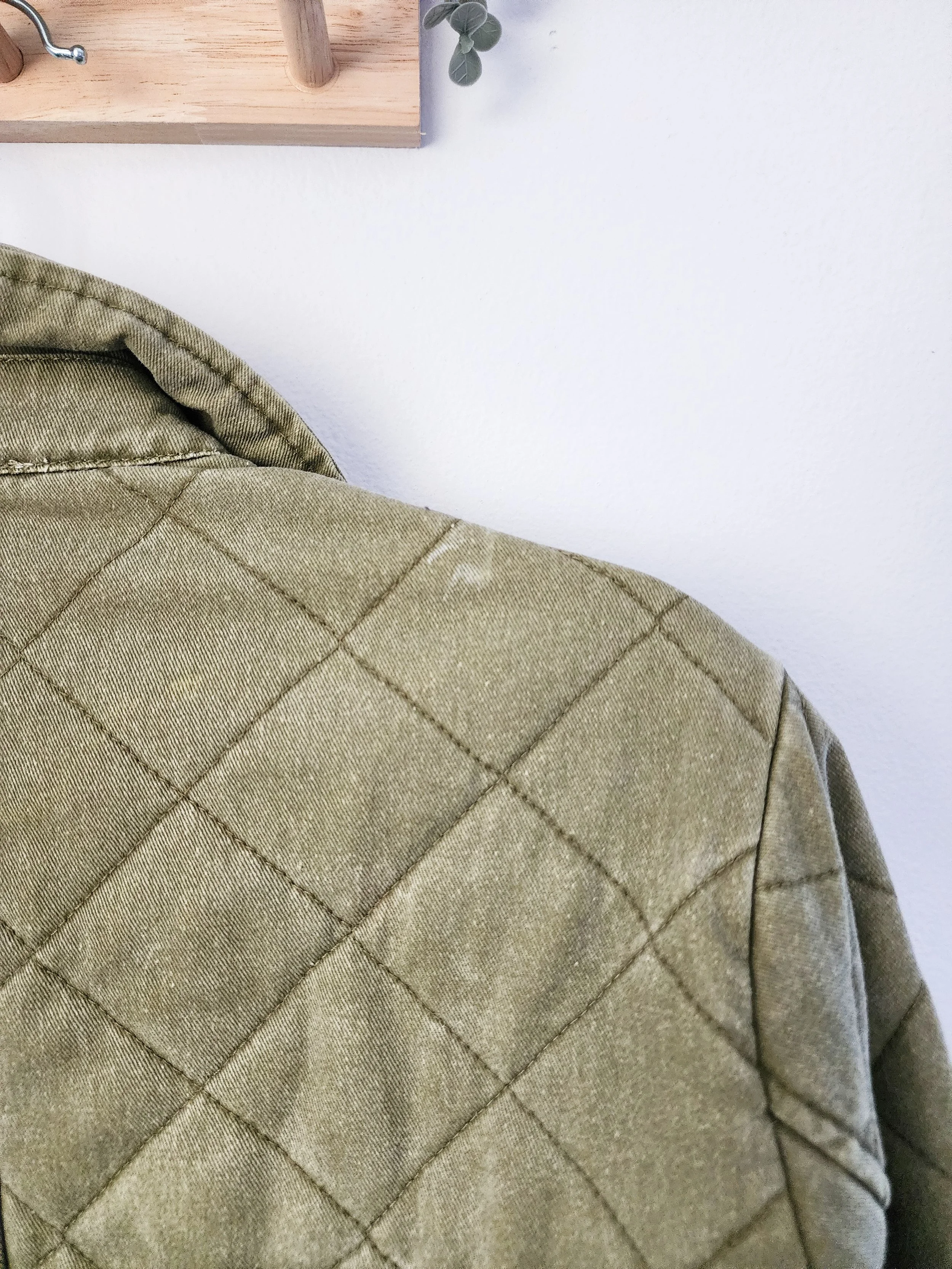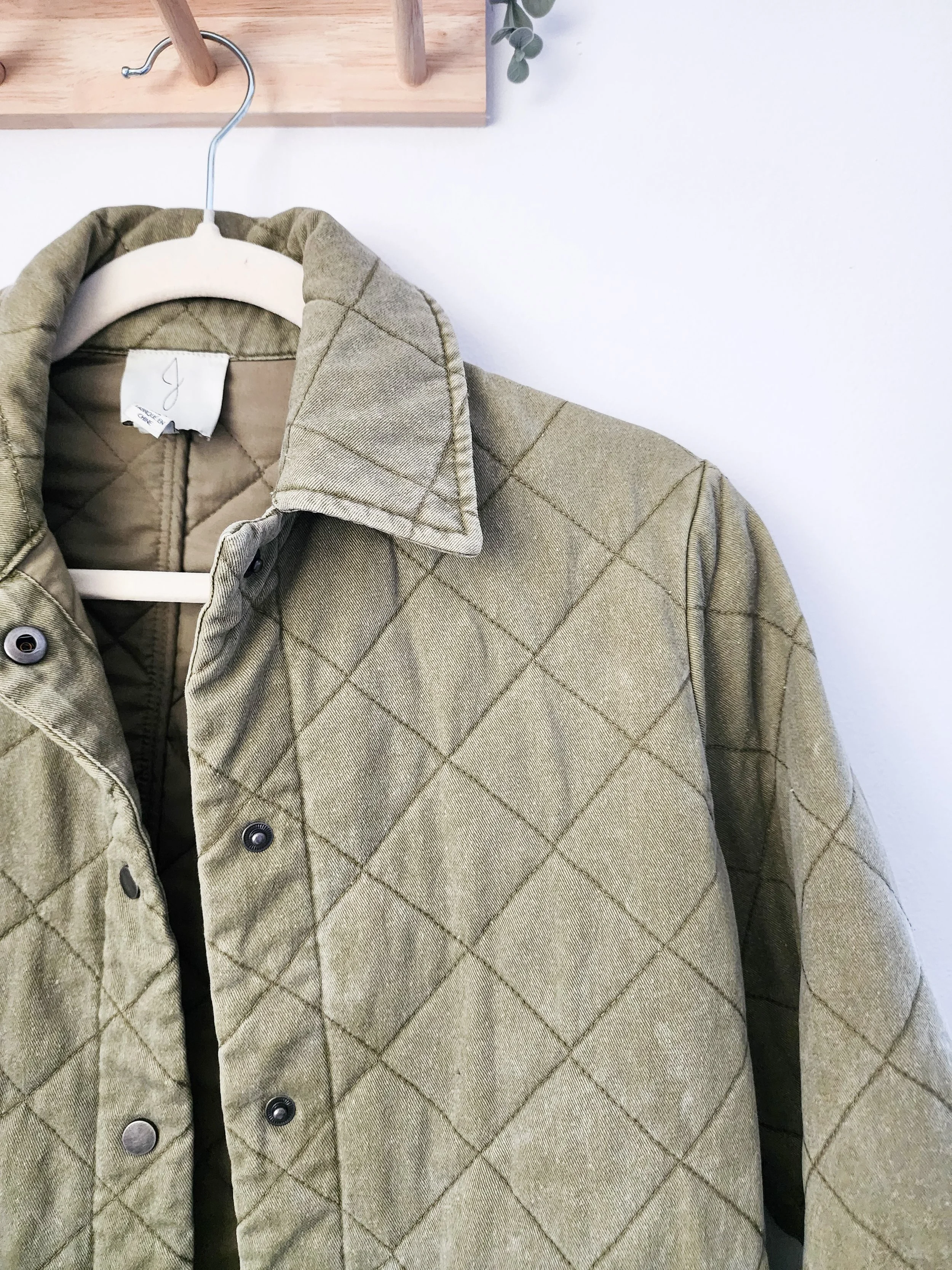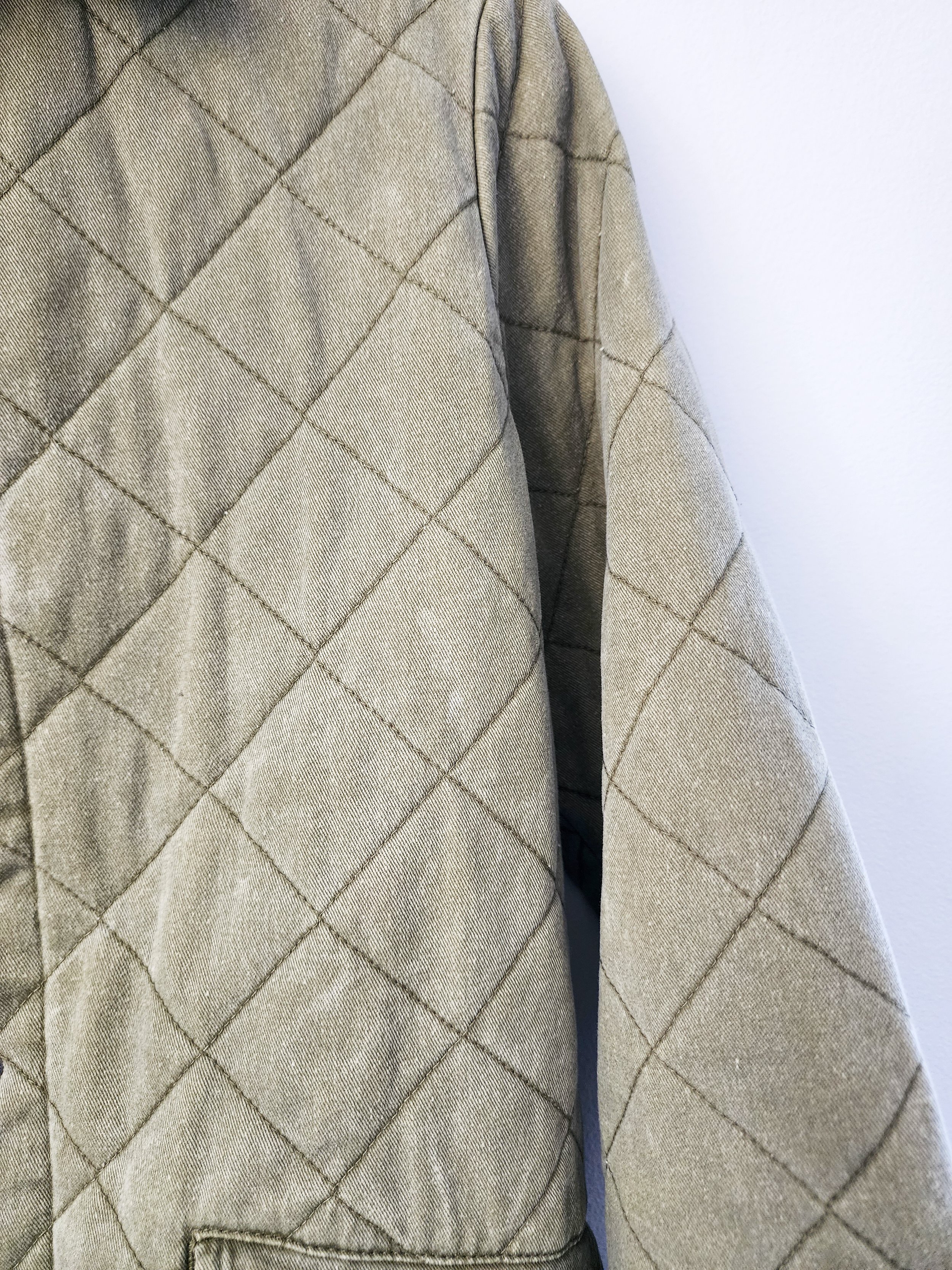 • features a quilted fit with a snap up front and cuffs along with deep pockets with snap-close flaps